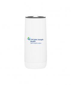 16.9 oz double wall 18/8 stainless steel tumbler with vacuum insulation, push-on lid, matching magnetic swivel closure, and rubberized base. Individual gift box. Hand wash recommended. Do not microwave. Complies with FDA, Prop 65. 7.125" H x 3.125" W