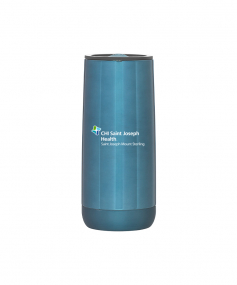 16.9 oz double wall 18/8 stainless steel tumbler with vacuum insulation, push-on lid, matching magnetic swivel closure, and rubberized base. Individual gift box. Hand wash recommended. Do not microwave. Complies with FDA, Prop 65. 7.125" H x 3.125" W