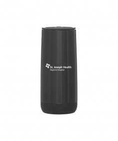 16.9 oz double wall 18/8 stainless steel tumbler with vacuum insulation, push-on lid, matching magnetic swivel closure, and rubberized base. Individual gift box. Hand wash recommended. Do not microwave. Complies with FDA, Prop 65. 7.125" H x 3.125" W