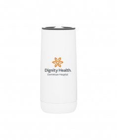 16.9 oz double wall 18/8 stainless steel tumbler with vacuum insulation, push-on lid, matching magnetic swivel closure, and rubberized base. Individual gift box. Hand wash recommended. Do not microwave. Complies with FDA, Prop 65. 7.125" H x 3.125" W