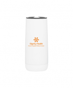 16.9 oz double wall 18/8 stainless steel tumbler with vacuum insulation, push-on lid, matching magnetic swivel closure, and rubberized base. Individual gift box. Hand wash recommended. Do not microwave. Complies with FDA, Prop 65. 7.125" H x 3.125" W