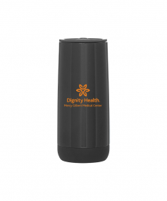 16.9 oz double wall 18/8 stainless steel tumbler with vacuum insulation, push-on lid, matching magnetic swivel closure, and rubberized base. Individual gift box. Hand wash recommended. Do not microwave. Complies with FDA, Prop 65. 7.125" H x 3.125" W