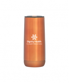 16.9 oz double wall 18/8 stainless steel tumbler with vacuum insulation, push-on lid, matching magnetic swivel closure, and rubberized base. Individual gift box. Hand wash recommended. Do not microwave. Complies with FDA, Prop 65. 7.125" H x 3.125" W