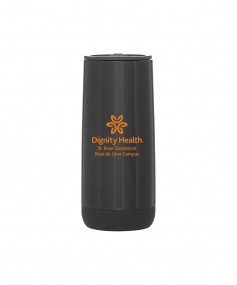 16.9 oz double wall 18/8 stainless steel tumbler with vacuum insulation, push-on lid, matching magnetic swivel closure, and rubberized base. Individual gift box. Hand wash recommended. Do not microwave. Complies with FDA, Prop 65. 7.125" H x 3.125" W