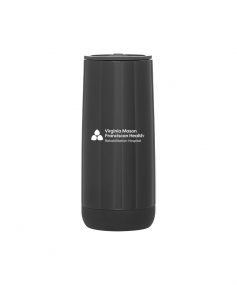 16.9 oz double wall 18/8 stainless steel tumbler with vacuum insulation, push-on lid, matching magnetic swivel closure, and rubberized base. Individual gift box. Hand wash recommended. Do not microwave. Complies with FDA, Prop 65. 7.125" H x 3.125" W
