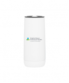 16.9 oz double wall 18/8 stainless steel tumbler with vacuum insulation, push-on lid, matching magnetic swivel closure, and rubberized base. Individual gift box. Hand wash recommended. Do not microwave. Complies with FDA, Prop 65. 7.125" H x 3.125" W