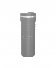 16.9 oz double wall tumbler with 18/8 stainless steel inner wall, stainless steel outer wall, vacuum insulation, push-on lid, swivel closure, stainless steel rim, and powder coated finish