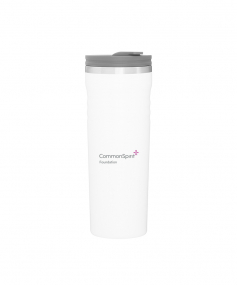 16.9 oz double wall tumbler with 18/8 stainless steel inner wall, stainless steel outer wall, vacuum insulation, push-on lid, swivel closure, stainless steel rim, and powder coated finish