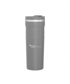 16.9 oz double wall tumbler with 18/8 stainless steel inner wall, stainless steel outer wall, vacuum insulation, push-on lid, swivel closure, stainless steel rim, and powder coated finish