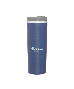 16.9 oz double wall tumbler with 18/8 stainless steel inner wall, stainless steel outer wall, vacuum insulation, push-on lid, swivel closure, stainless steel rim, and powder coated finish