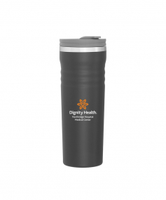 16.9 oz double wall tumbler with 18/8 stainless steel inner wall, stainless steel outer wall, vacuum insulation, push-on lid, swivel closure, stainless steel rim, and powder coated finish