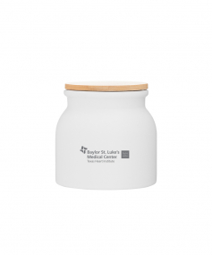 16.9 oz stoneware: matte white out / glossy white in with push-on bamboo lid; Hand wash recommended; Microwave safe with non-metallic imprint; 4 3/16 h x 4 3/16 (w/handle) w ; 500mL.
