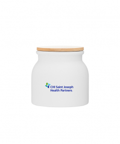 16.9 oz stoneware: matte white out / glossy white in with push-on bamboo lid; Hand wash recommended; Microwave safe with non-metallic imprint; 4 3/16 h x 4 3/16 (w/handle) w ; 500mL.