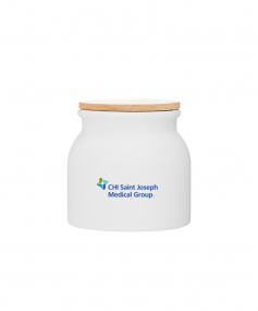 16.9 oz stoneware: matte white out / glossy white in with push-on bamboo lid; Hand wash recommended; Microwave safe with non-metallic imprint; 4 3/16 h x 4 3/16 (w/handle) w ; 500mL.