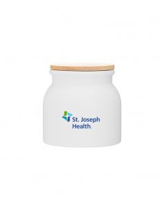 16.9 oz stoneware: matte white out / glossy white in with push-on bamboo lid; Hand wash recommended; Microwave safe with non-metallic imprint; 4 3/16 h x 4 3/16 (w/handle) w ; 500mL.