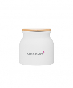 16.9 oz stoneware: matte white out / glossy white in with push-on bamboo lid; Hand wash recommended; Microwave safe with non-metallic imprint; 4 3/16 h x 4 3/16 (w/handle) w ; 500mL.