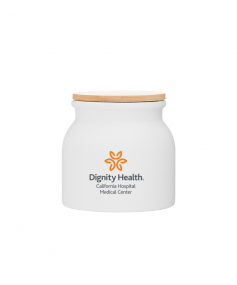 16.9 oz stoneware: matte white out / glossy white in with push-on bamboo lid; Hand wash recommended; Microwave safe with non-metallic imprint; 4 3/16 h x 4 3/16 (w/handle) w ; 500mL.