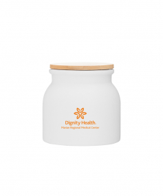 16.9 oz stoneware: matte white out / glossy white in with push-on bamboo lid; Hand wash recommended; Microwave safe with non-metallic imprint; 4 3/16 h x 4 3/16 (w/handle) w ; 500mL.