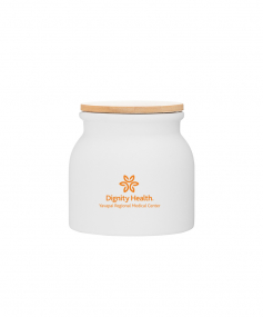 16.9 oz stoneware: matte white out / glossy white in with push-on bamboo lid; Hand wash recommended; Microwave safe with non-metallic imprint; 4 3/16 h x 4 3/16 (w/handle) w ; 500mL.