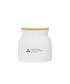 16.9 oz stoneware: matte white out / glossy white in with push-on bamboo lid; Hand wash recommended; Microwave safe with non-metallic imprint; 4 3/16 h x 4 3/16 (w/handle) w ; 500mL.