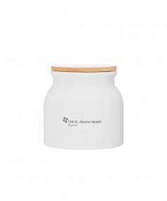 16.9 oz stoneware: matte white out / glossy white in with push-on bamboo lid; Hand wash recommended; Microwave safe with non-metallic imprint; 4 3/16 h x 4 3/16 (w/handle) w ; 500mL.