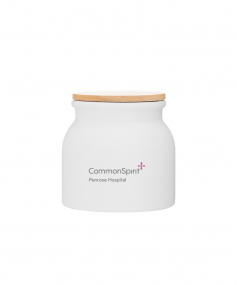 16.9 oz stoneware: matte white out / glossy white in with push-on bamboo lid; Hand wash recommended; Microwave safe with non-metallic imprint; 4 3/16 h x 4 3/16 (w/handle) w ; 500mL.