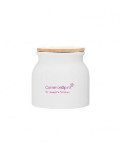16.9 oz stoneware: matte white out / glossy white in with push-on bamboo lid; Hand wash recommended; Microwave safe with non-metallic imprint; 4 3/16 h x 4 3/16 (w/handle) w ; 500mL.