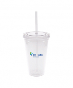 This is a BPA free 16 Oz. translucent acrylic double wall insulated cup with a matching PP straw. The O-ring keeps the straw in place. This tumbler includes a twist top lid. This item is non-microwavable and recommended hand wash only. Complies with Prop 65. 3.88" W x 6.13" H