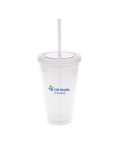 This is a BPA free 16 Oz. translucent acrylic double wall insulated cup with a matching PP straw. The O-ring keeps the straw in place. This tumbler includes a twist top lid. This item is non-microwavable and recommended hand wash only. Complies with Prop 65. 3.88" W x 6.13" H