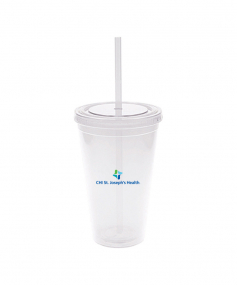 This is a BPA free 16 Oz. translucent acrylic double wall insulated cup with a matching PP straw. The O-ring keeps the straw in place. This tumbler includes a twist top lid. This item is non-microwavable and recommended hand wash only. Complies with Prop 65. 3.88" W x 6.13" H
