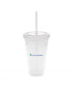 This is a BPA free 16 Oz. translucent acrylic double wall insulated cup with a matching PP straw. The O-ring keeps the straw in place. This tumbler includes a twist top lid. This item is non-microwavable and recommended hand wash only. Complies with Prop 65. 3.88" W x 6.13" H