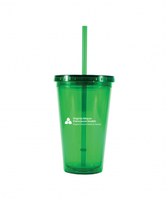 This is a BPA free 16 Oz. translucent acrylic double wall insulated cup with a matching PP straw. The O-ring keeps the straw in place. This tumbler includes a twist top lid. This item is non-microwavable and recommended hand wash only. Complies with Prop 65. 3.88" W x 6.13" H