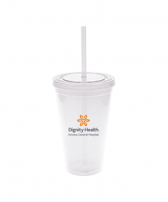 This is a BPA free 16 Oz. translucent acrylic double wall insulated cup with a matching PP straw. The O-ring keeps the straw in place. This tumbler includes a twist top lid. This item is non-microwavable and recommended hand wash only. Complies with Prop 65. 3.88" W x 6.13" H