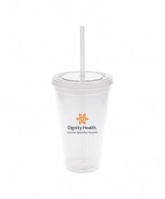 This is a BPA free 16 Oz. translucent acrylic double wall insulated cup with a matching PP straw. The O-ring keeps the straw in place. This tumbler includes a twist top lid. This item is non-microwavable and recommended hand wash only. Complies with Prop 65. 3.88" W x 6.13" H