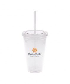 This is a BPA free 16 Oz. translucent acrylic double wall insulated cup with a matching PP straw. The O-ring keeps the straw in place. This tumbler includes a twist top lid. This item is non-microwavable and recommended hand wash only. Complies with Prop 65. 3.88" W x 6.13" H