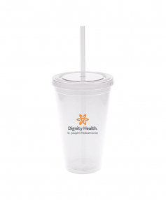 This is a BPA free 16 Oz. translucent acrylic double wall insulated cup with a matching PP straw. The O-ring keeps the straw in place. This tumbler includes a twist top lid. This item is non-microwavable and recommended hand wash only. Complies with Prop 65. 3.88" W x 6.13" H