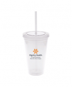 This is a BPA free 16 Oz. translucent acrylic double wall insulated cup with a matching PP straw. The O-ring keeps the straw in place. This tumbler includes a twist top lid. This item is non-microwavable and recommended hand wash only. Complies with Prop 65. 3.88" W x 6.13" H