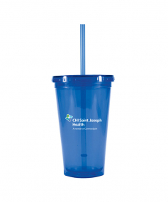 This is a BPA free 16 Oz. translucent acrylic double wall insulated cup with a matching PP straw. The O-ring keeps the straw in place. This tumbler includes a twist top lid. This item is non-microwavable and recommended hand wash only. Complies with Prop 65. 3.88" W x 6.13" H
