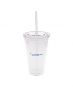 This is a BPA free 16 Oz. translucent acrylic double wall insulated cup with a matching PP straw. The O-ring keeps the straw in place. This tumbler includes a twist top lid. This item is non-microwavable and recommended hand wash only. Complies with Prop 65. 3.88" W x 6.13" H