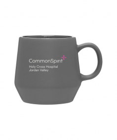 16 oz stoneware: matte color out / glossy color in. Hand wash recommended. Microwave safe with non-metallic imprint. Complies with FDA, Prop 65. 4" H x 5.38" W