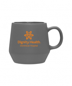 16 oz stoneware: matte color out / glossy color in. Hand wash recommended. Microwave safe with non-metallic imprint. Complies with FDA, Prop 65. 4" H x 5.38" W
