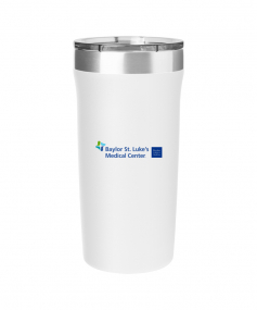 18 oz double wall 18/8 stainless steel thermal tumbler with vacuum insulation, brushed stainless steel rim, clear push-on acrylic lid with sliding closure, and powder coated finish. Hand wash recommended. Do not microwave. Complies with FDA, Prop 65. 7.25" H x 3.5" W