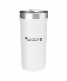 18 oz double wall 18/8 stainless steel thermal tumbler with vacuum insulation, brushed stainless steel rim, clear push-on acrylic lid with sliding closure, and powder coated finish. Hand wash recommended. Do not microwave. Complies with FDA, Prop 65. 7.25" H x 3.5" W