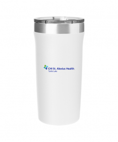18 oz double wall 18/8 stainless steel thermal tumbler with vacuum insulation, brushed stainless steel rim, clear push-on acrylic lid with sliding closure, and powder coated finish. Hand wash recommended. Do not microwave. Complies with FDA, Prop 65. 7.25" H x 3.5" W