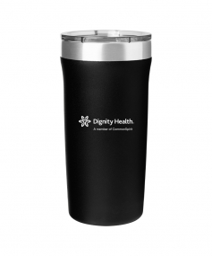18 oz double wall 18/8 stainless steel thermal tumbler with vacuum insulation, brushed stainless steel rim, clear push-on acrylic lid with sliding closure, and powder coated finish. Hand wash recommended. Do not microwave. Complies with FDA, Prop 65. 7.25" H x 3.5" W