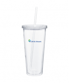 20 oz double wall acrylic tumbler with threaded lid and matching soft straw.