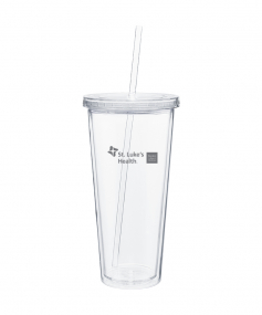 20 oz double wall acrylic tumbler with threaded lid and matching soft straw.