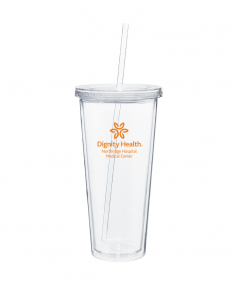 20 oz double wall acrylic tumbler with threaded lid and matching soft straw.