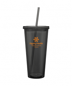 20 oz double wall acrylic tumbler with threaded lid and matching soft straw.