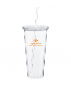 20 oz double wall acrylic tumbler with threaded lid and matching soft straw.